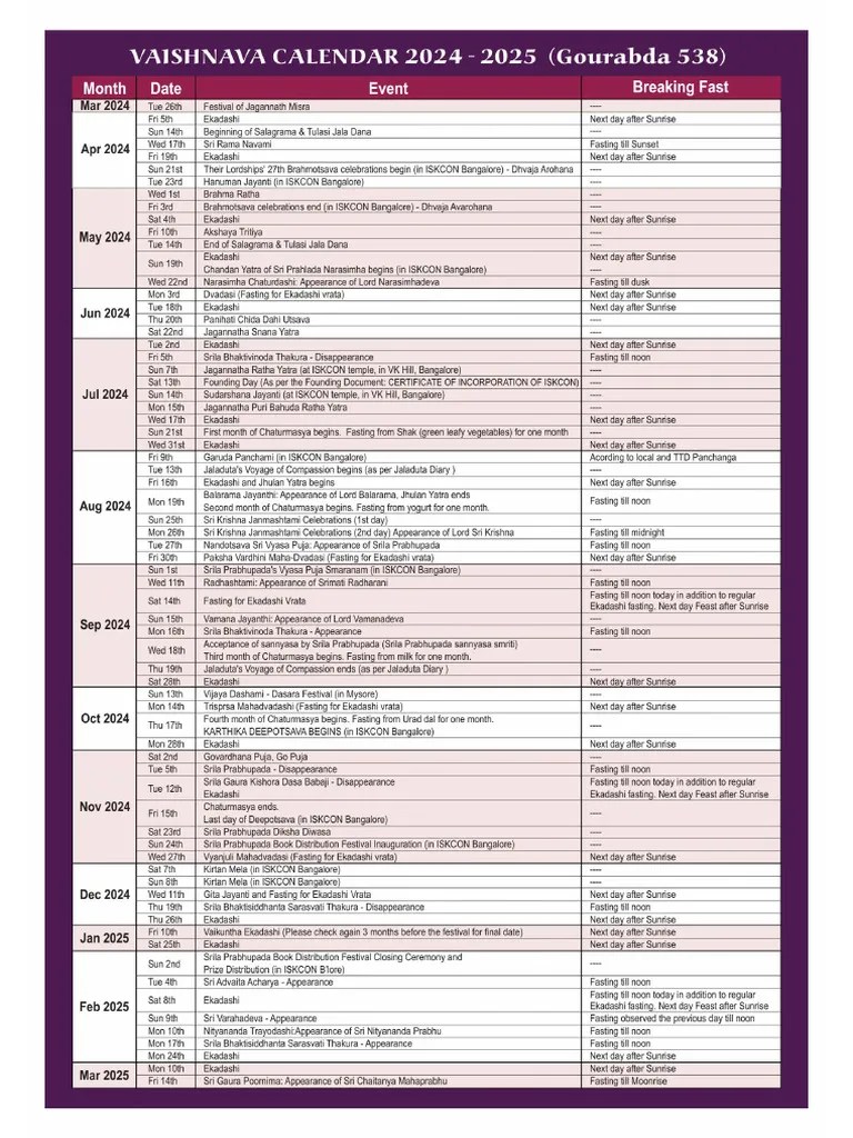 Vaishnava Calendar 2024 Sammy Cherrita